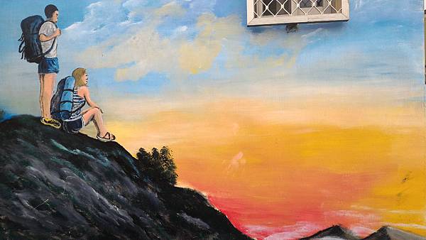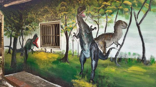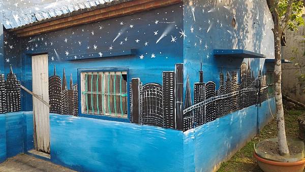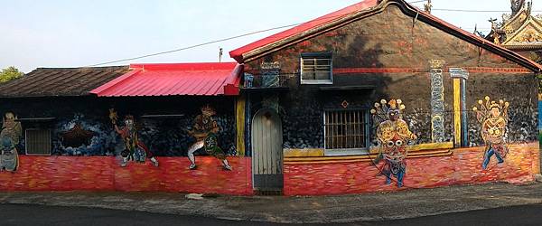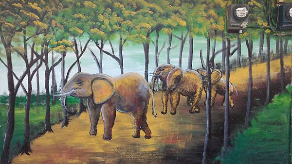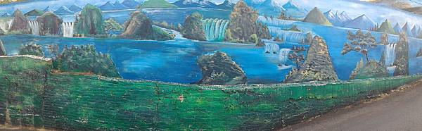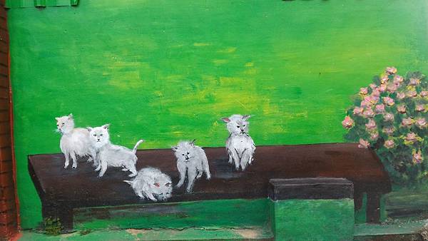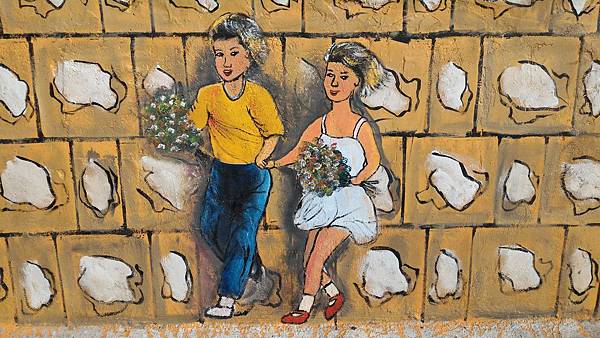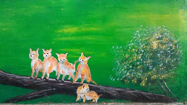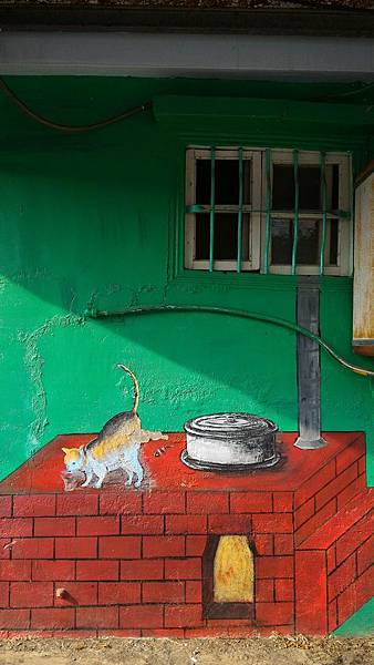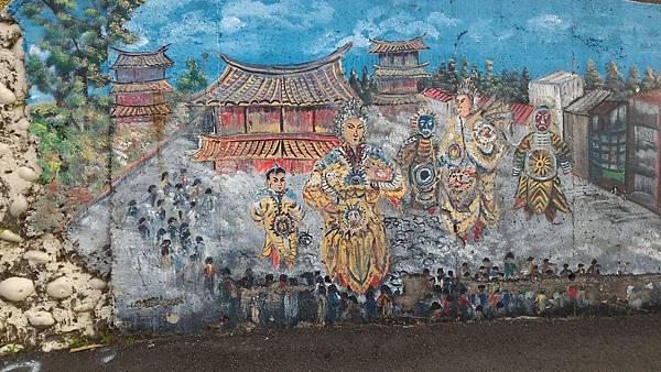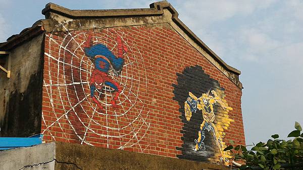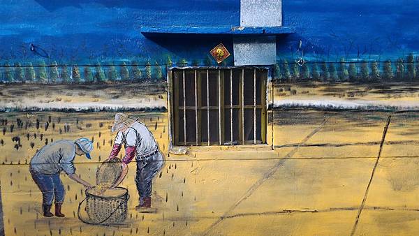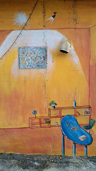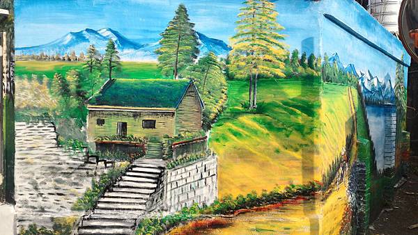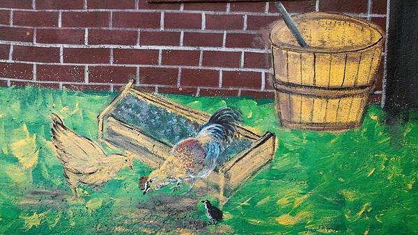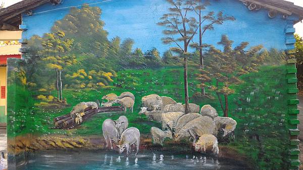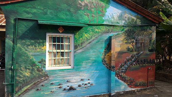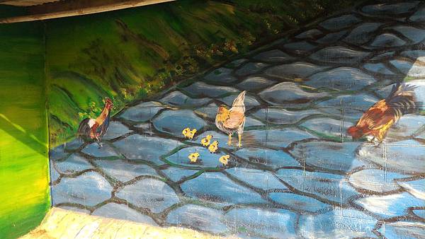 這個庄頭範圍可不小喔!真是佩服那位畫家,庄頭庄尾都給他畫上企了。基本上有牆的地方,都是他的畫布。