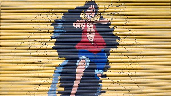 這一副寬畫,就依著牆高低而畫,拍照時候,小心經過車輛。